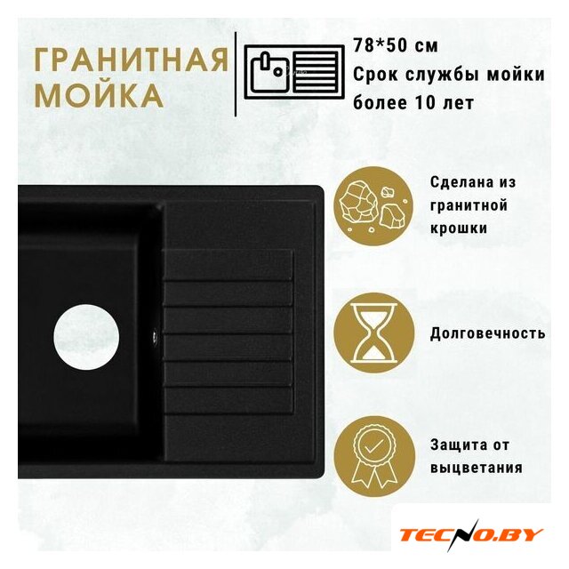 врезная на столешницу, искусственный камень, размеры: 78x50 см