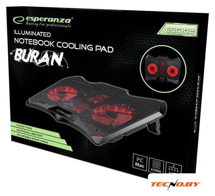 для ноутбука до 17.3", активное охлаждение, шум 25 дБ, регулируемый наклон, подсветка, 1xUSB