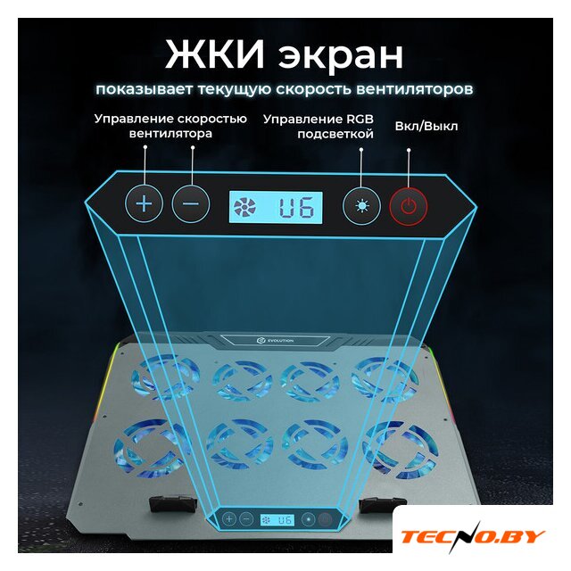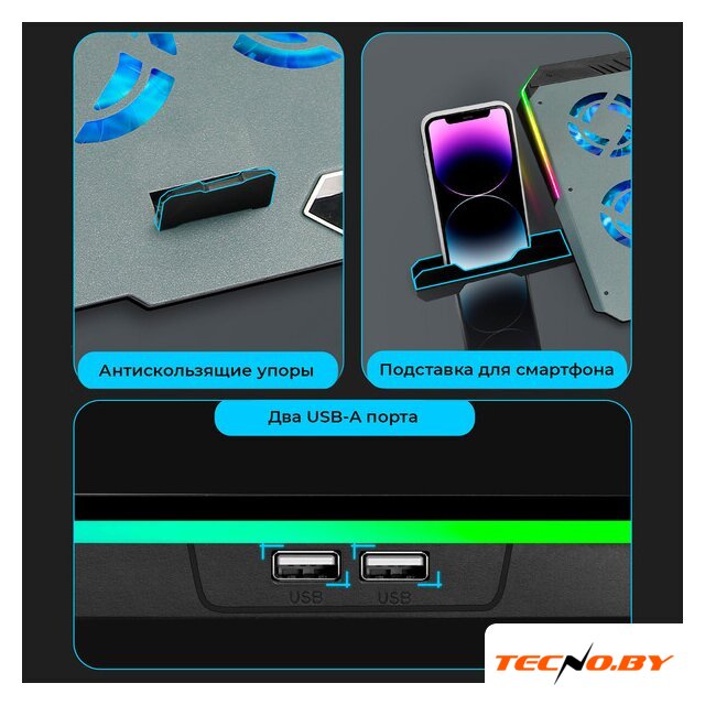 для ноутбука, активное охлаждение, шум 30 дБ, регулируемый наклон, подсветка, 1xUSB