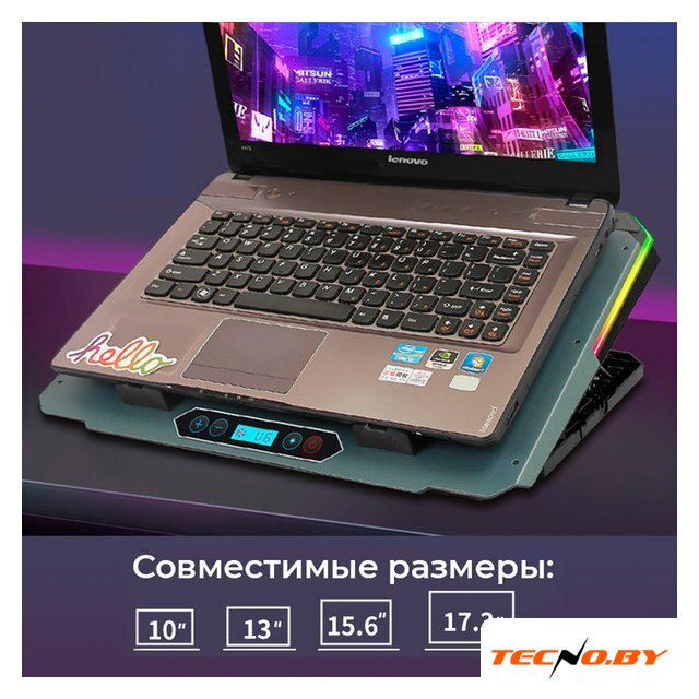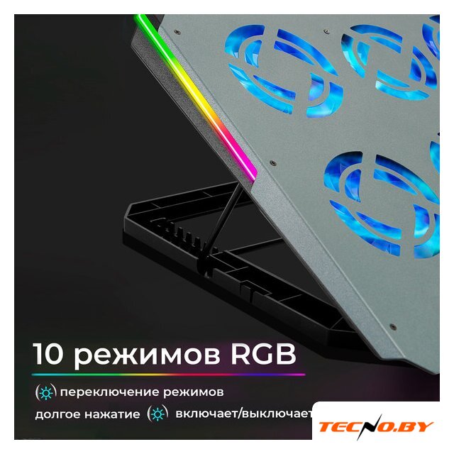 для ноутбука до 17.3", активное охлаждение, шум 25 дБ, регулируемый наклон, подсветка, 1xUSB