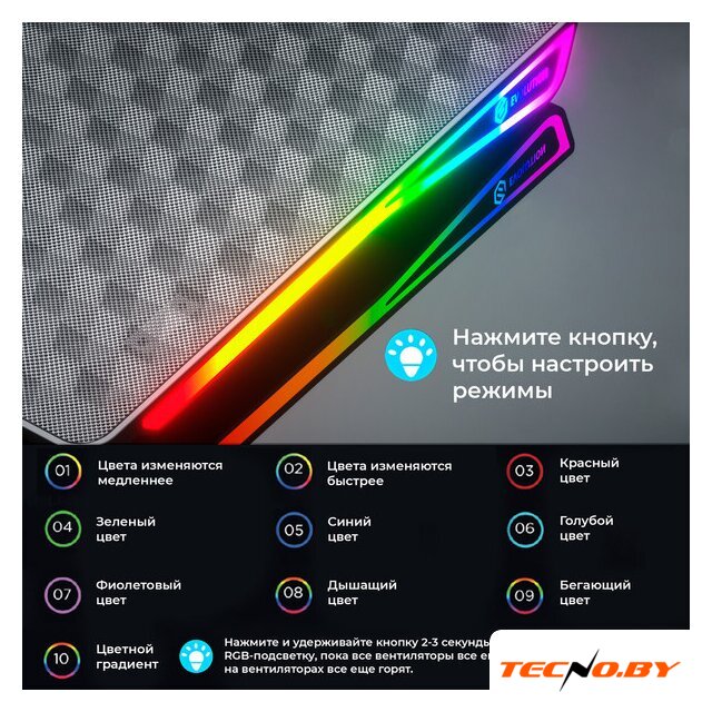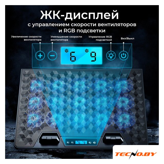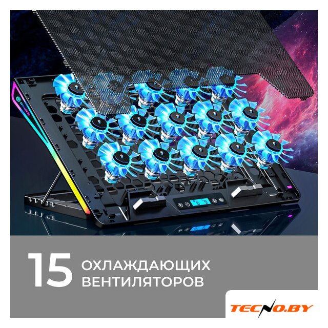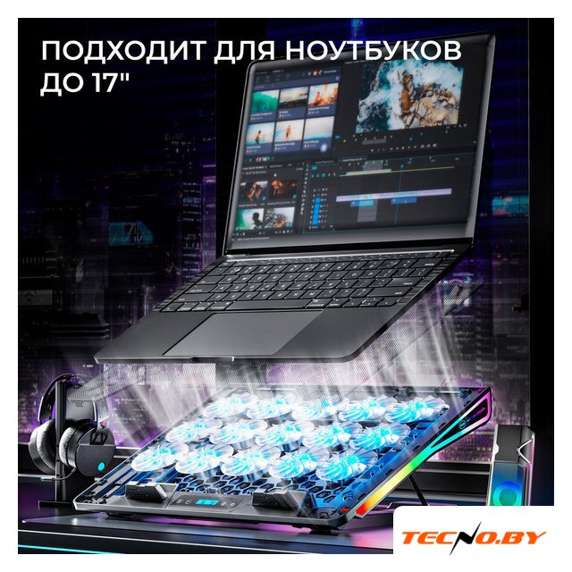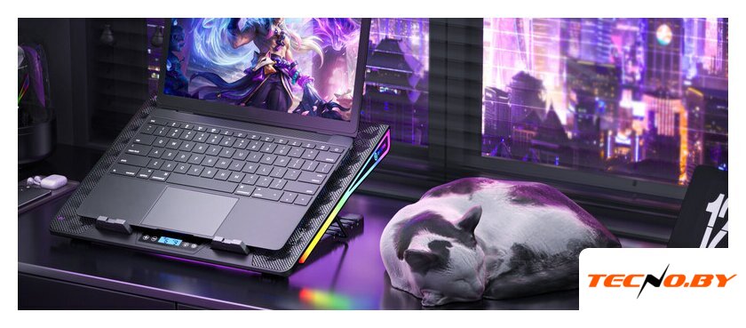 для ноутбука, активное охлаждение, шум 20 дБ, регулируемый наклон, подсветка, 1xUSB