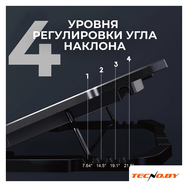 для ноутбука до 17.3", активное охлаждение, шум 20 дБ, регулируемый наклон, подсветка, 1xUSB