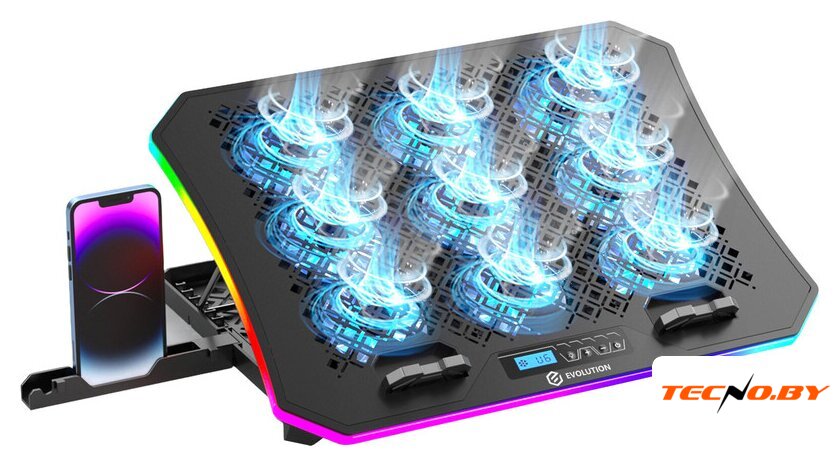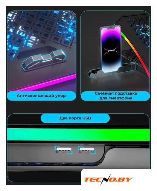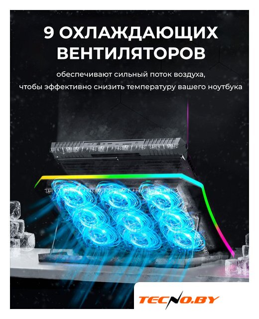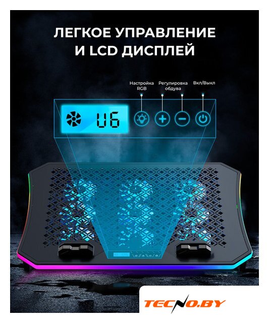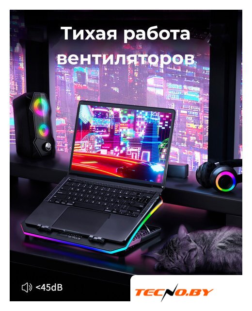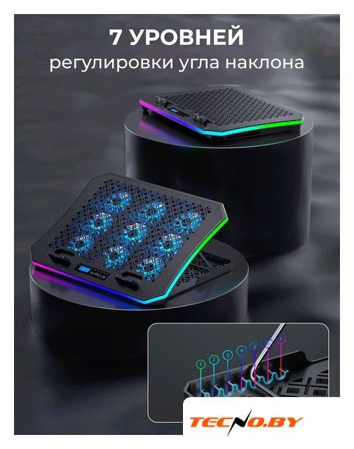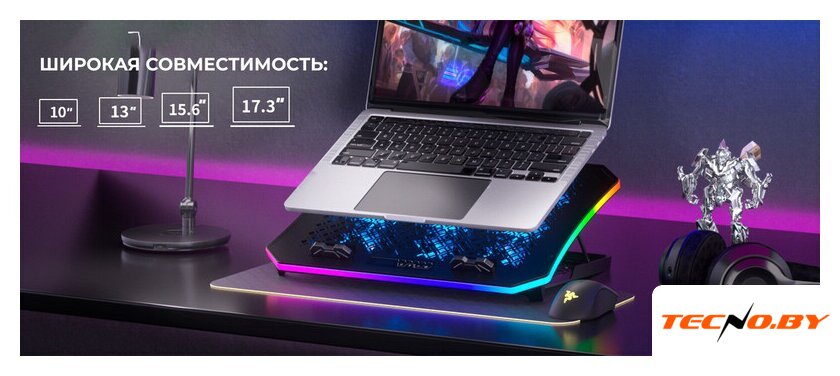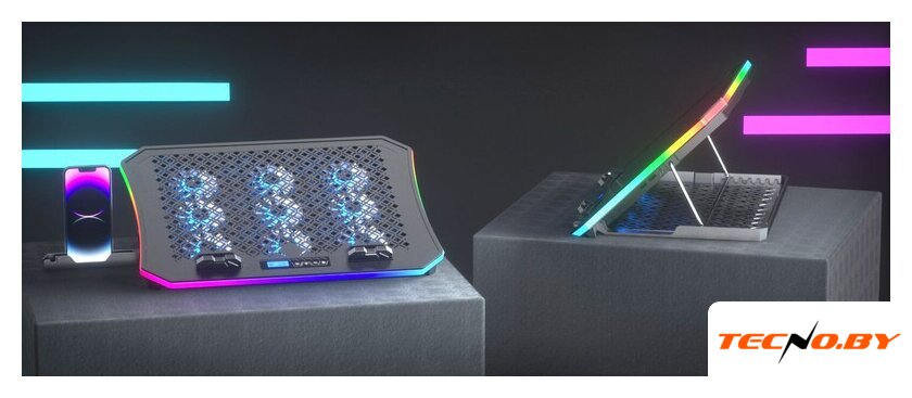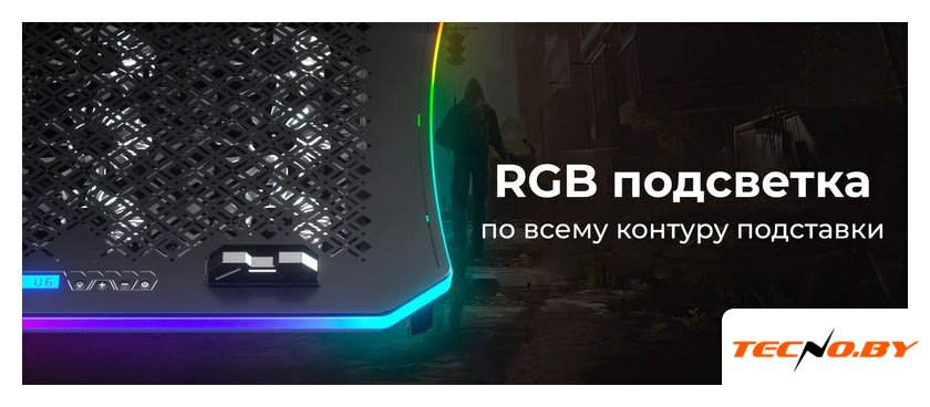 для ноутбука до 17.3", активное охлаждение, шум 24 дБ, регулируемый наклон, подсветка, 1xUSB