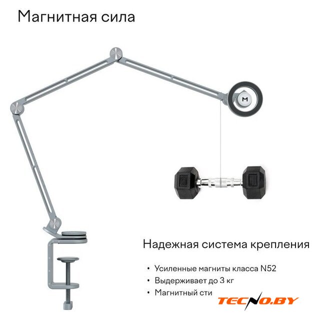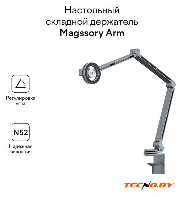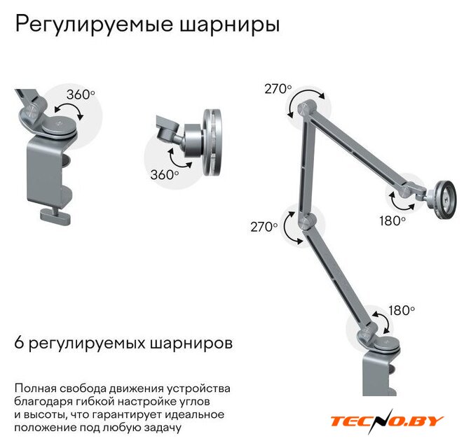 | Особенности | Полная свобода движения устройства благодаря гибкой настройке углов и высоты, что гарантирует идеальное положение под любую задачу. Сила крепления до 3 кг. |