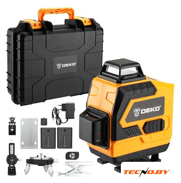 Комплект поставки | Лазерный уровень - 1 шт.Адаптер для штатива - 1 шт.Фиксатор - 1шт.Пульт дистанционного управления - 1 шт.Металлическая пластина для крепления - 1 шт.Кронштейн (состоит из 2х деталей) - 1 шт.Зарядное устройство - 1 шт.Подъемная платформа - 1 шт.АКБ - 2 шт.Кейс |