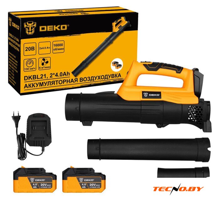 Комплектация | - Воздуходувка - 1 шт.- Труба удлинительная пластиковая - 2 шт.- Зарядное устройство - 1 шт.- Аккумуляторная батарея 4,0 - 2 шт.- Инструкция |