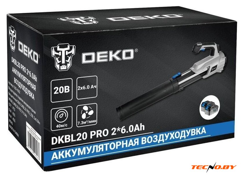 | Комплектация | - Воздуходувка - 1 шт.- Труба удлинительная пластиковая - 1 шт.- Зарядное устройство - 1 шт.- Аккумуляторная батарея 6,0 - 2 шт.- Инструкция |