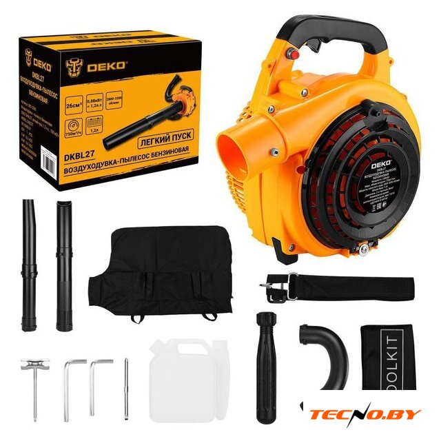 Комплектация | - Верхняя труба подачи воздуха - 1 шт.- Нижняя труба подачи воздуха - 1 шт.- Емкость для топлива - 1 шт.- Пылесборник - 1 шт.- Мешочек для устройства - 1 шт.- Гнутая труба - 1 шт.- Верхняя труба пылесоса - 1 шт.- Нижняя труба пылесоса - 1 шт.- Плечевой ремень - 1 шт.- Свечной ключ - 1 шт.- Шестигранный ключ - 2 шт.- Двухстороння отвертка - 1 шт.- Руководство по эксплуатации- Коробка |