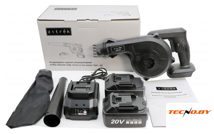 Комплектация | - Воздуходувка-пылесос - 1 шт.- Зарядное устройство - 1 шт.- Аккумулятор 4,0 Ач - 2 шт.- Мусоросборник - 1 шт.- Насадка-труба - 1 шт.- Инструкция- Коробка |