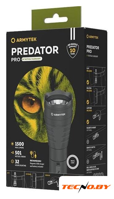 | Комплект поставки | - фонарь;- аккумулятор 18650;- быстрая магнитная USB-зарядка;- стальная клипса;- ремешок на руку;- нейлоновый чехол;- силиконовый грип-упор;- два запасных уплотнительных кольца;- инструкция. |