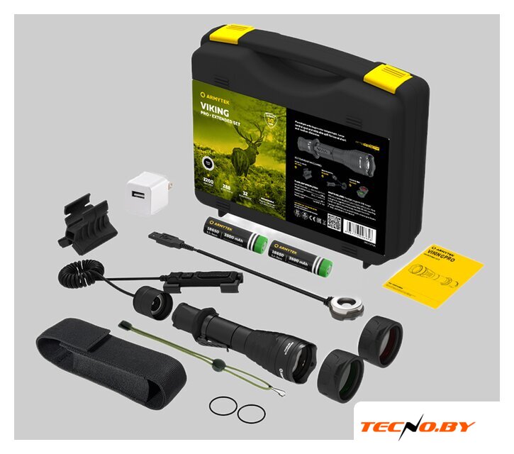 | Комплект поставки | - Фонарь (Armytek Viking Pro Magnet USB);- 2 аккумулятора 18650 Li-Ion 3500 мАч;- 2 цветных фильтра (красный, зеленый);- Магнитная выносная кнопка MRS-01 с креплением и липучкой фиксации;- Магнитное подствольное крепление AWM-03;- Сетевой адаптер;- Стальная клипса;- Магнитное зарядное устройство AMC-03;- Ремешок на руку из паракорда;- Нейлоновый чехол;- Силиконовый грип-упор;- 2 запасных уплотнительных кольца;- Инструкция. |