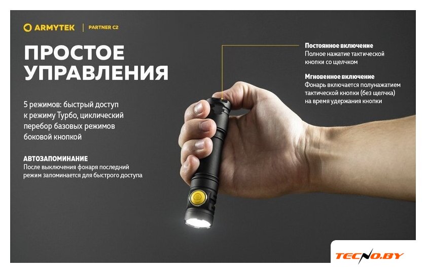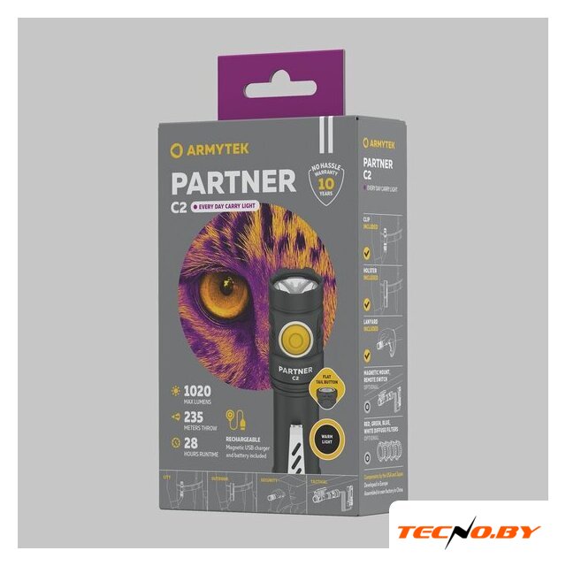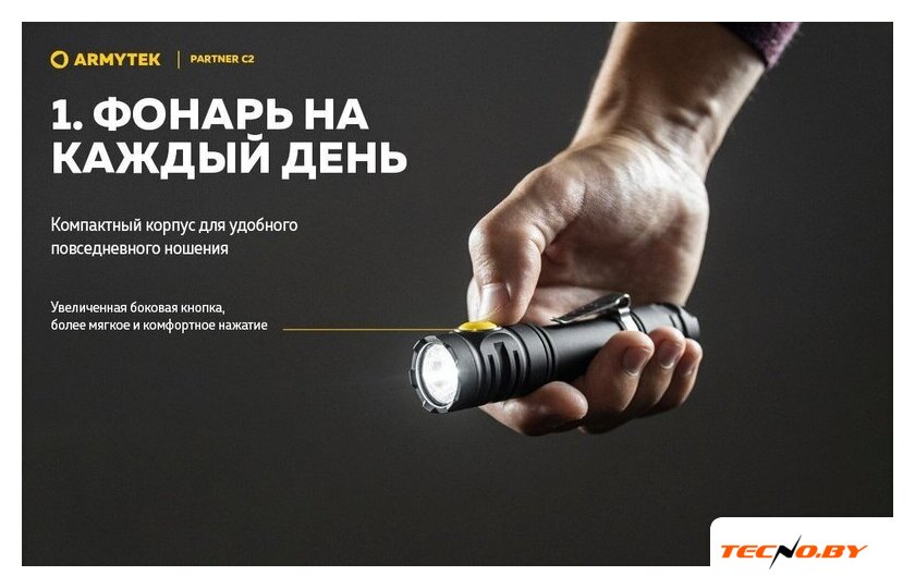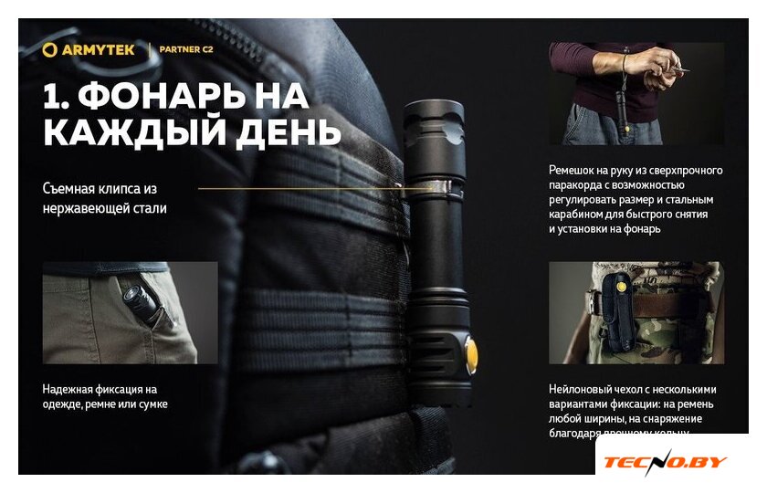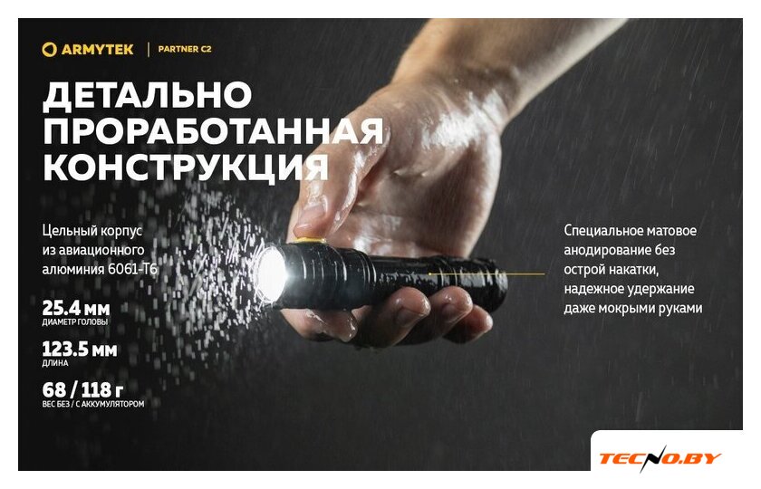 | Комплект поставки | - Фонарь;- Аккумулятор;- Магнитная USB-зарядка;- Стальная клипса;- Нейлоновый чехол;- Ремешок на руку;- 2 запасных уплотнительных кольца;- Инструкция. |