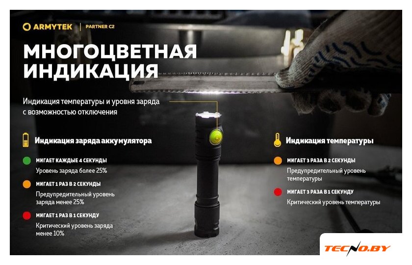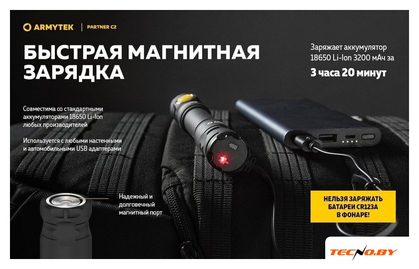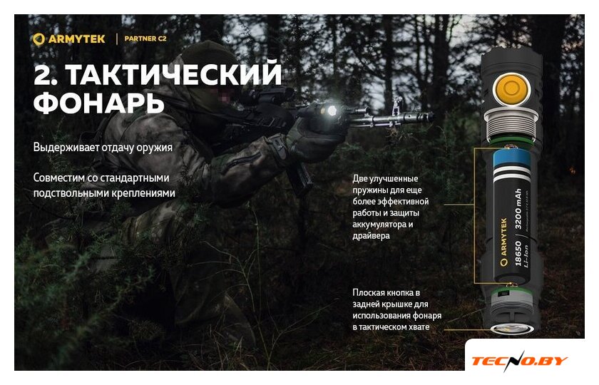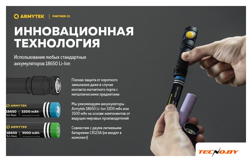 | Типоразмер аккумулятора | 1x18650, 2xCR123A |