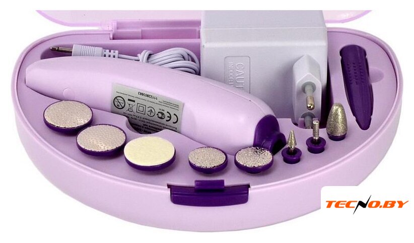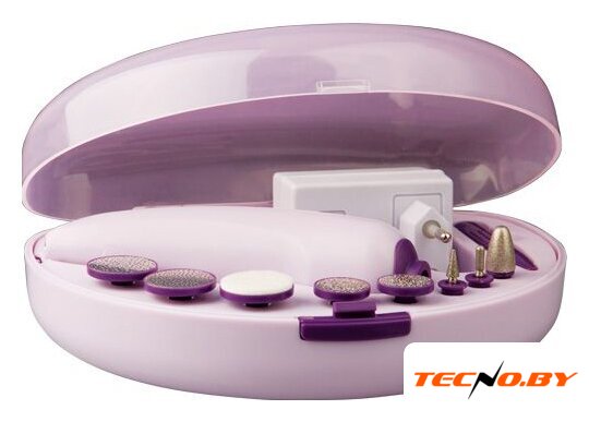 | Комплектация | - большая конусообразная насадка- цилиндрическая насадка- конусообразная насадка- малый диск для подпиливания (с мелкой насечкой)- малый диск для подпиливания (с крупной насечкой)- мягкий диск-насадка для полировки- диск-насадка (менее шероховатая) длямягкого удаления огрубевшей кожи- диск-насадка (более шероховатая) дляудаления огрубевшей кожи- лопатка для поднятия кутикулы- привод насадок- сетевой адаптер- футляр |