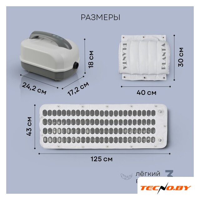 материал: искусственная кожа, роликовый массаж, массаж шиацу, разминающий массаж, вибромассаж, подогрев, питание: сеть 220В/прикуриватель, размеры: 41x75x40 см