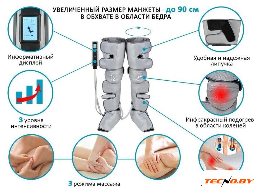 роликовый массаж, воздушный массаж, подогрев, питание: аккумулятор