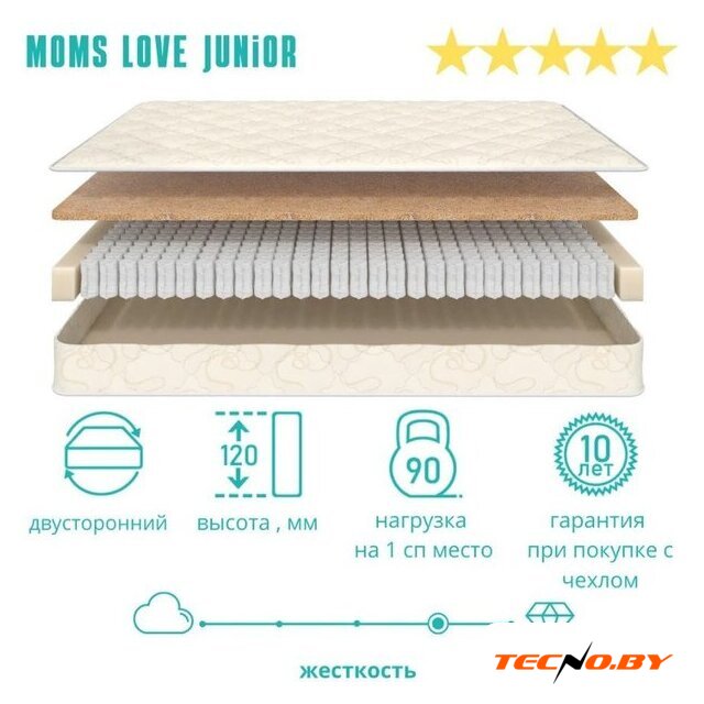 независимые пружины, TFK, 272 шт/м², кокосовая койра/пенополиуретан, жесткость: среднемягкий/средний, 110 кг/место, высота: 18 см, чехол: трикотажная ткань PREMIUM