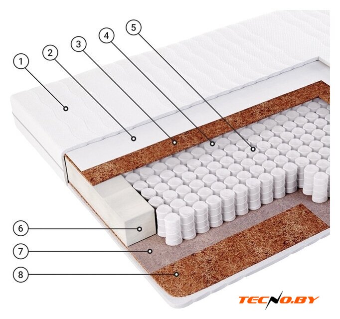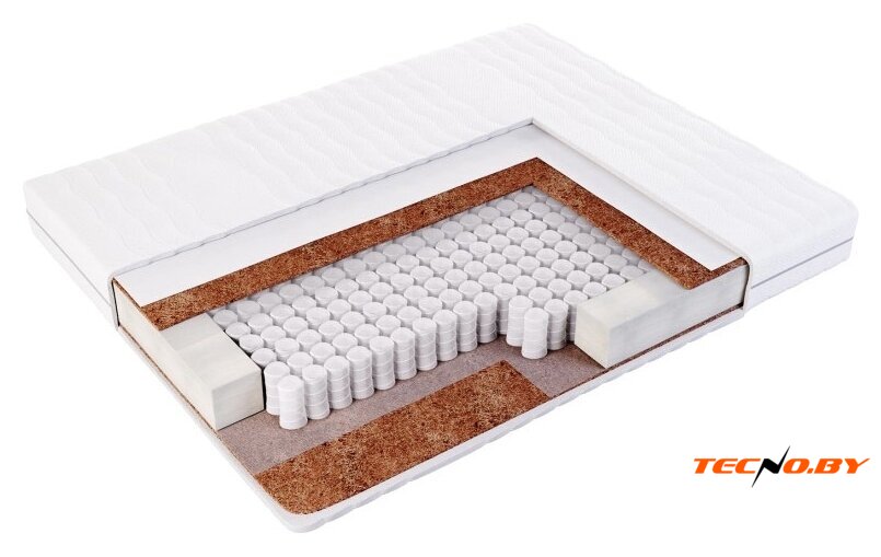 независимые пружины, TFK, 272 шт/м², кокосовая койра/пенополиуретан, жесткость: среднемягкий/средний, 110 кг/место, высота: 18 см, чехол: трикотажная ткань PREMIUM