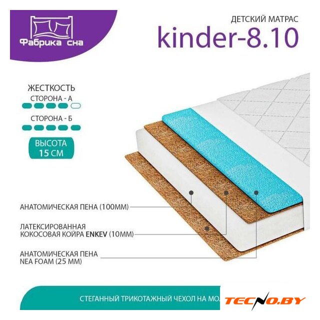 детский, беспружинный, пенополиуретан, 1 зона, жесткость: средний/среднежёсткий, 80 кг/место, высота: 11 см, чехол: трикотаж