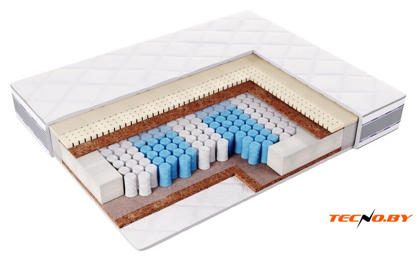независимые пружины, TFK, кокосовая койра/латекс, 7 зон, жесткость: среднежёсткий/жёсткий, 130 кг/место, высота: 19 см, чехол: жаккард