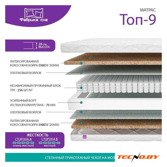 независимые пружины, TFK, 256 шт/м², 7 зон, жесткость: жёсткий, 120 кг/место, высота: 22 см, чехол: бамбуковое волокно
