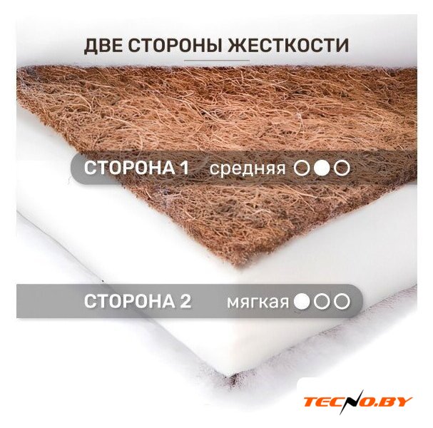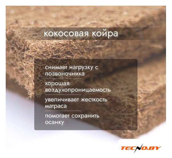 независимые пружины, 256 шт/м², пенополиуретан/кокосовая койра, жесткость: средний/среднежёсткий, 100 кг/место, высота: 19 см, чехол: трикотаж