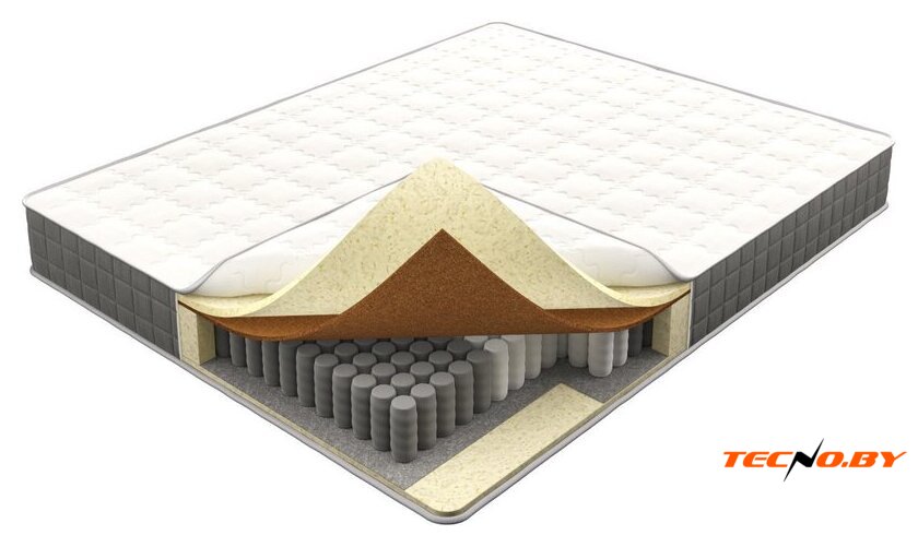 независимые пружины, 256 шт/м², пенополиуретан/кокосовая койра, жесткость: среднемягкий/средний, 100 кг/место, высота: 19 см, чехол: трикотаж