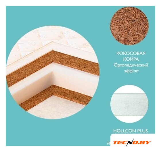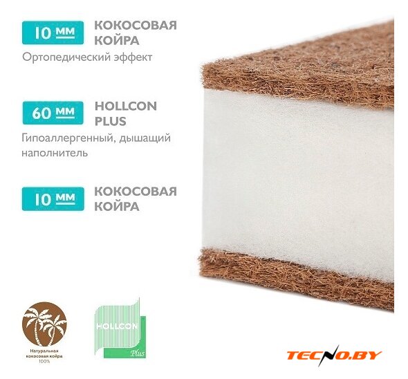 беспружинный, кокосовая койра/латекс/форплит, жесткость: средний/среднежёсткий, 20 кг/место, высота: 12 см, чехол: трикотаж