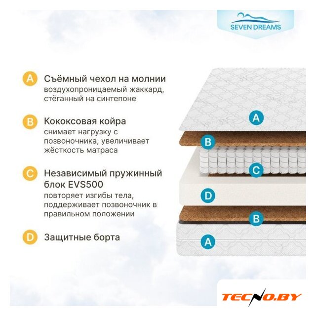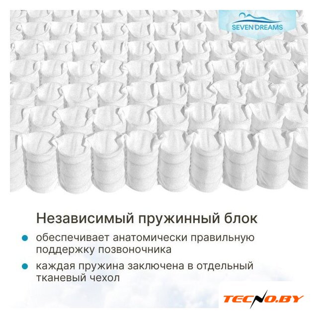 независимые пружины, 7 зон, жесткость: среднемягкий/среднежёсткий, 120 кг/место, высота: 20 см, чехол: трикотаж