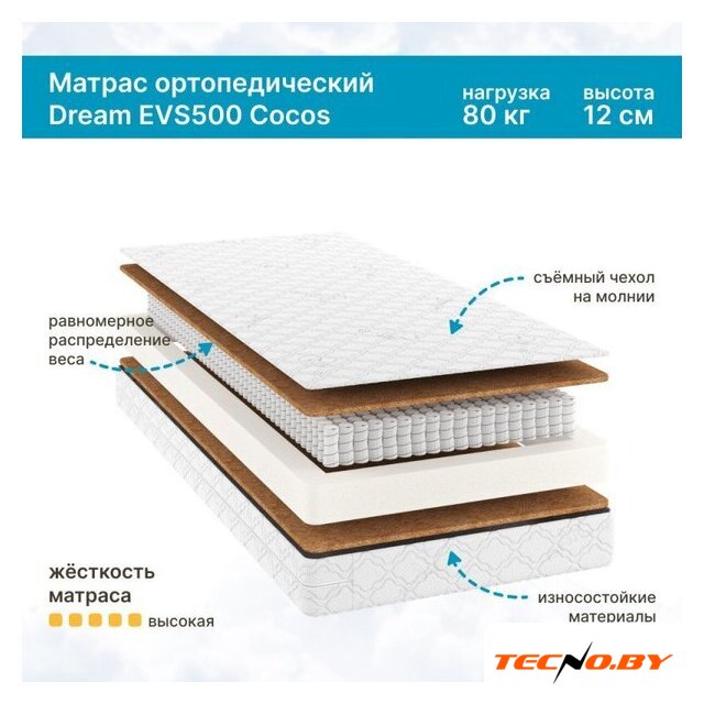 независимые пружины, TFK, 272 шт/м², кокосовая койра/пенополиуретан, жесткость: среднемягкий/средний, 110 кг/место, высота: 18 см, чехол: трикотажная ткань PREMIUM