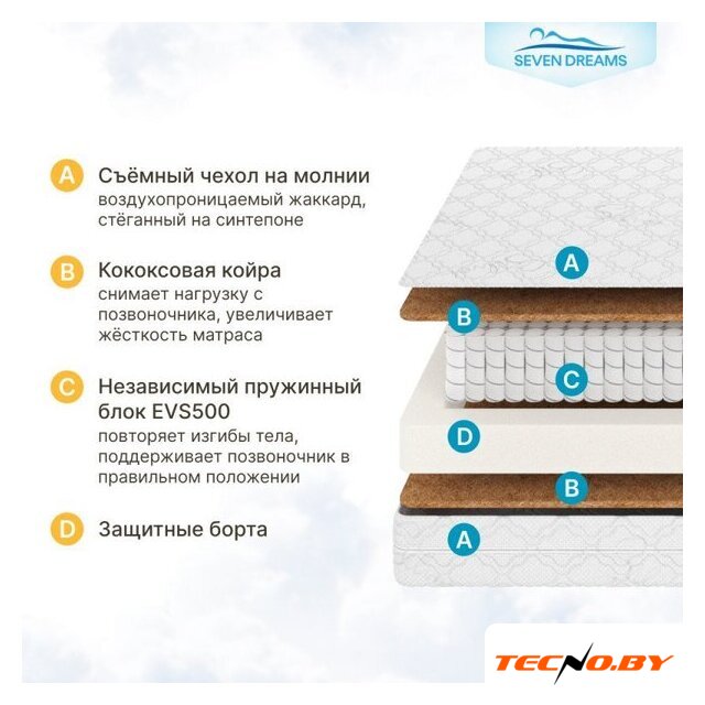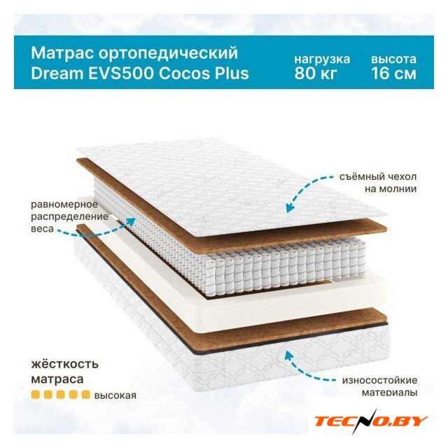 независимые пружины, кокосовая койра/пенополиуретан, жесткость: жёсткий/средний, 80 кг/место, высота: 14 см, чехол: жаккард