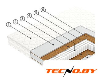 независимые пружины, Multipocket, 256 шт/м², кокосовая койра/пенополиуретан, 1 зона, жесткость: среднежёсткий, 110 кг/место, высота: 20 см, чехол: жаккард