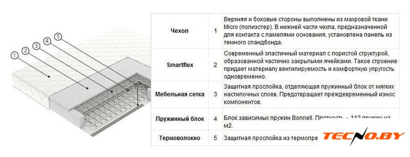 независимые пружины, TFK, кокосовая койра/пенополиуретан, жесткость: средний/среднежёсткий, 120 кг/место, высота: 20 см, чехол: трикотаж/джерси