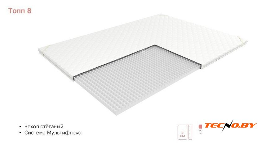 топпер, ортопедический, трикотаж, наполнитель: пенополиуретан, толщина 85 мм, двухсторонний, без крепления