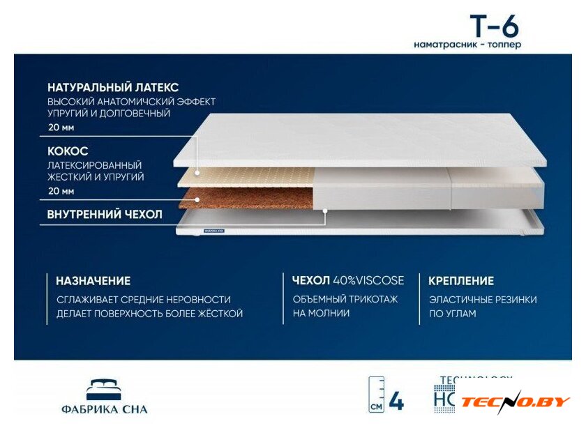 топпер, ортопедический, хлопчатобумажная ткань, наполнитель: латекс/кокосовая койра/пенополиуретан, толщина 7 мм, двухсторонний, на угловых резинках