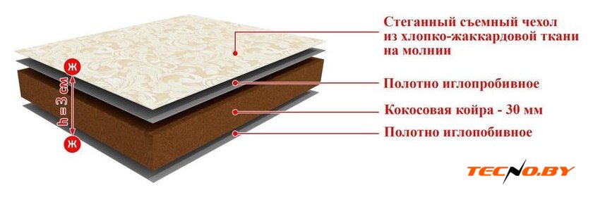 топпер, ортопедический, хлопчатобумажная ткань, наполнитель: латекс/кокосовая койра/пенополиуретан, толщина 7 мм, двухсторонний, на угловых резинках