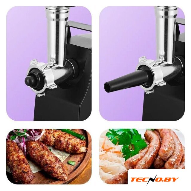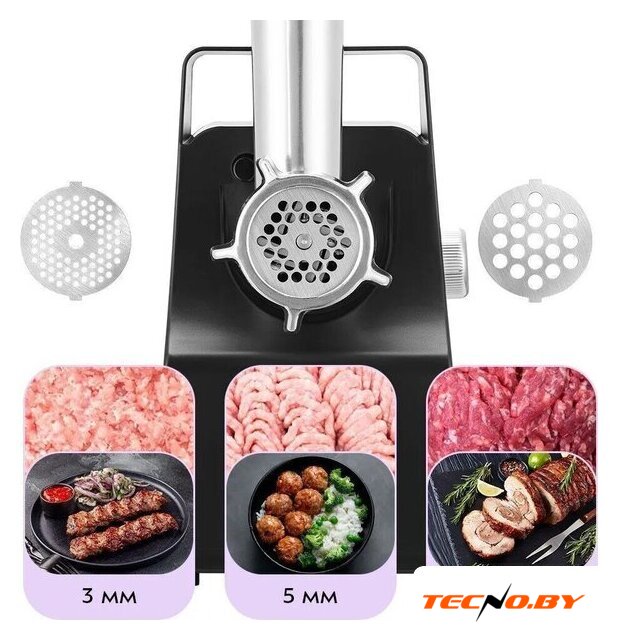 | Полная комплектация | мясорубка, толкатель, три формовочных диска (3 мм, 5 мм, 7 мм), насадка для кеббе, насадка для колбасы, инструкция |