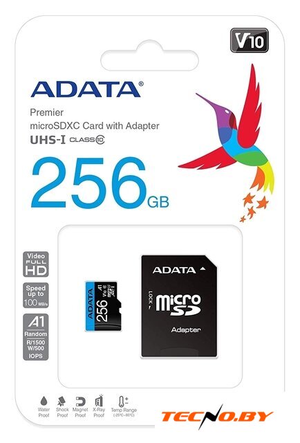 256 Гб, класс 10, UHS-I (класс U3), V30, A2, чтение: 100 МБ/с, адаптер