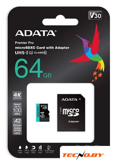 128 ГБ, класс 10, UHS-I (класс U3), V30, A1, чтение: 100 МБ/с, адаптер
