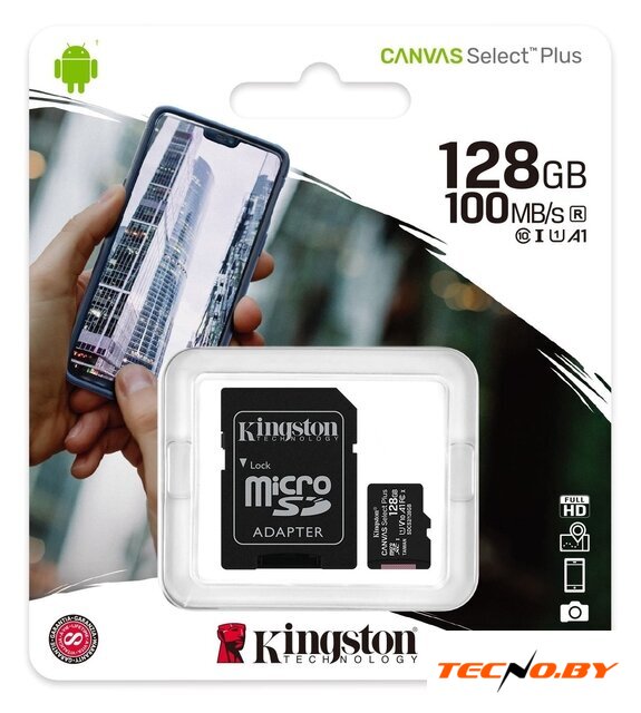 128 ГБ, класс 10, UHS-I (класс U3), V30, A1, чтение: 100 МБ/с, адаптер