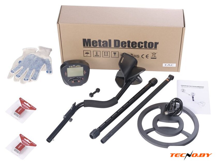| Комплектация | Блок управления - 1штКомплект штанг - 1штПоисковая катушка - 1штИнструкция по эксплуатации - 1 штФирменная коробка - 1 шт2 батарейки типа КронаХлопковые перчатки |