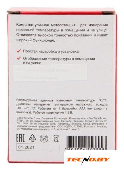 термогигрометр, интеграция в "умный дом": нет, питание: батарейки