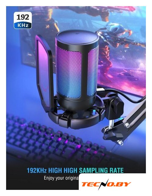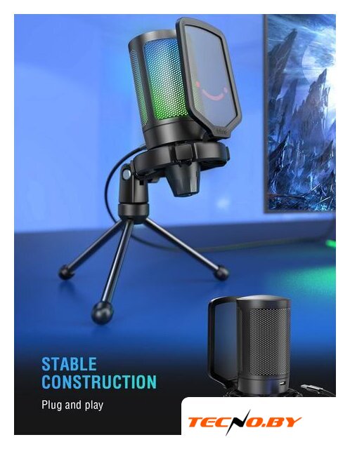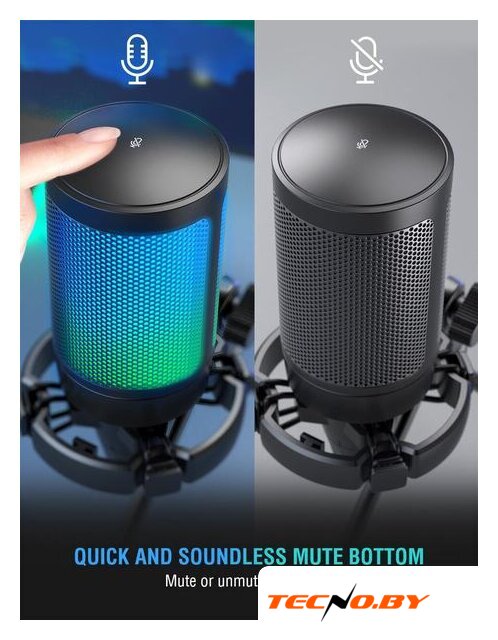 конденсаторный, кардиоидная направленность, настольный, для стриминга и подкастов, 50-20000 Гц, подключение по USB Type-A, черный