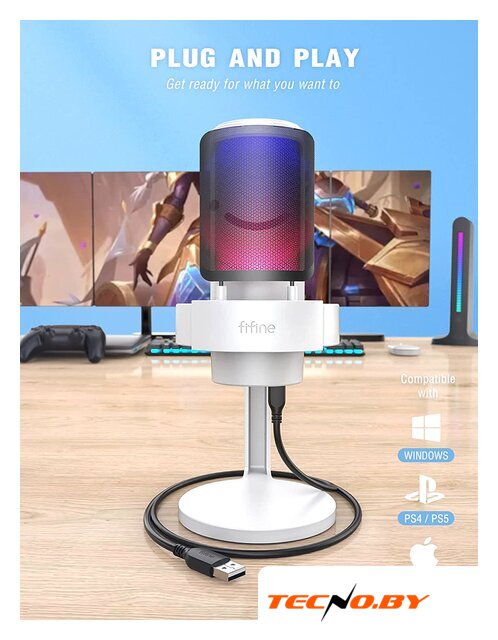 электретный (малый конденсатор), настольный, для стриминга и подкастов, кардиоидная направленность, 20-20000 Гц, разъем подключения USB Type-A, длина кабеля 1.8 м