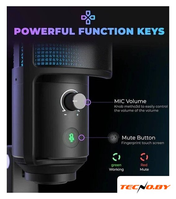 электретный (малый конденсатор), настольный, для стриминга и подкастов, кардиоидная направленность, 50-20000 Гц, разъем подключения USB Type-A