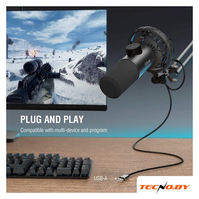 электретный (малый конденсатор), настольный, для стриминга и подкастов, кардиоидная/круговая направленность, 30-18000 Гц, разъем подключения USB Type-A, длина кабеля 1.5 м