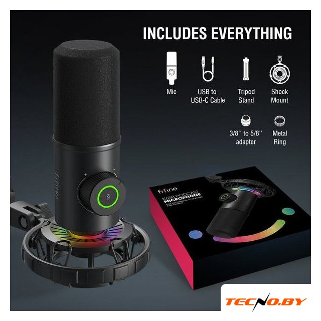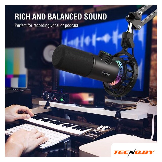 конденсаторный, кардиоидная направленность, настольный, для стриминга и подкастов, 60-18000 Гц, подключение по USB Type-A, черный
