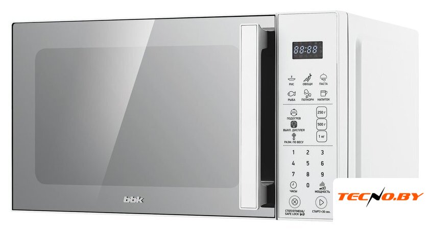 отдельностоящая, микроволны (соло), объем 23 л, выходная мощность микроволн 800 Вт, управление электронное, авторазмораживание, цвет белый/черный