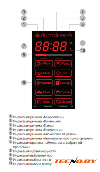 отдельностоящая, микроволны (соло), объем 20 л, выходная мощность микроволн 800 Вт, управление электронное, автоприготовление, авторазмораживание, цвет черный