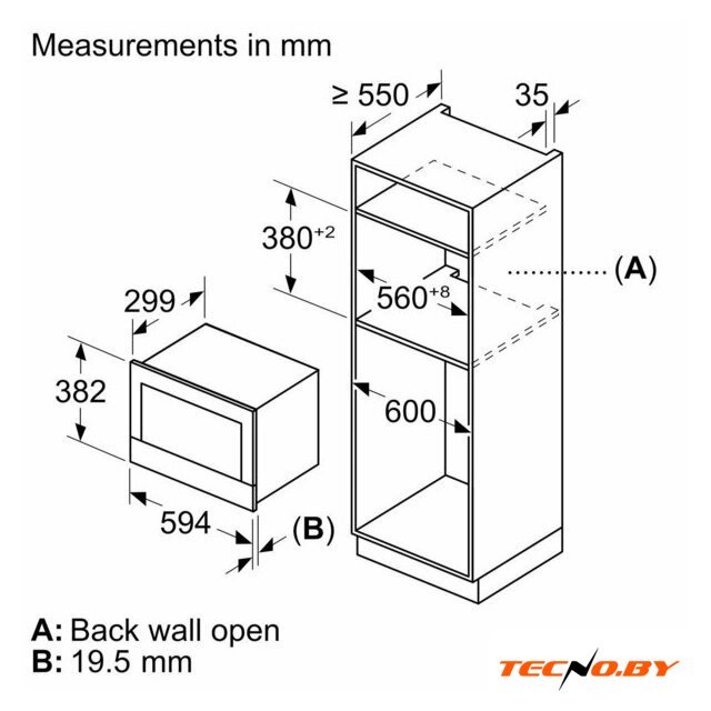 Размеры ниши для встраивания |